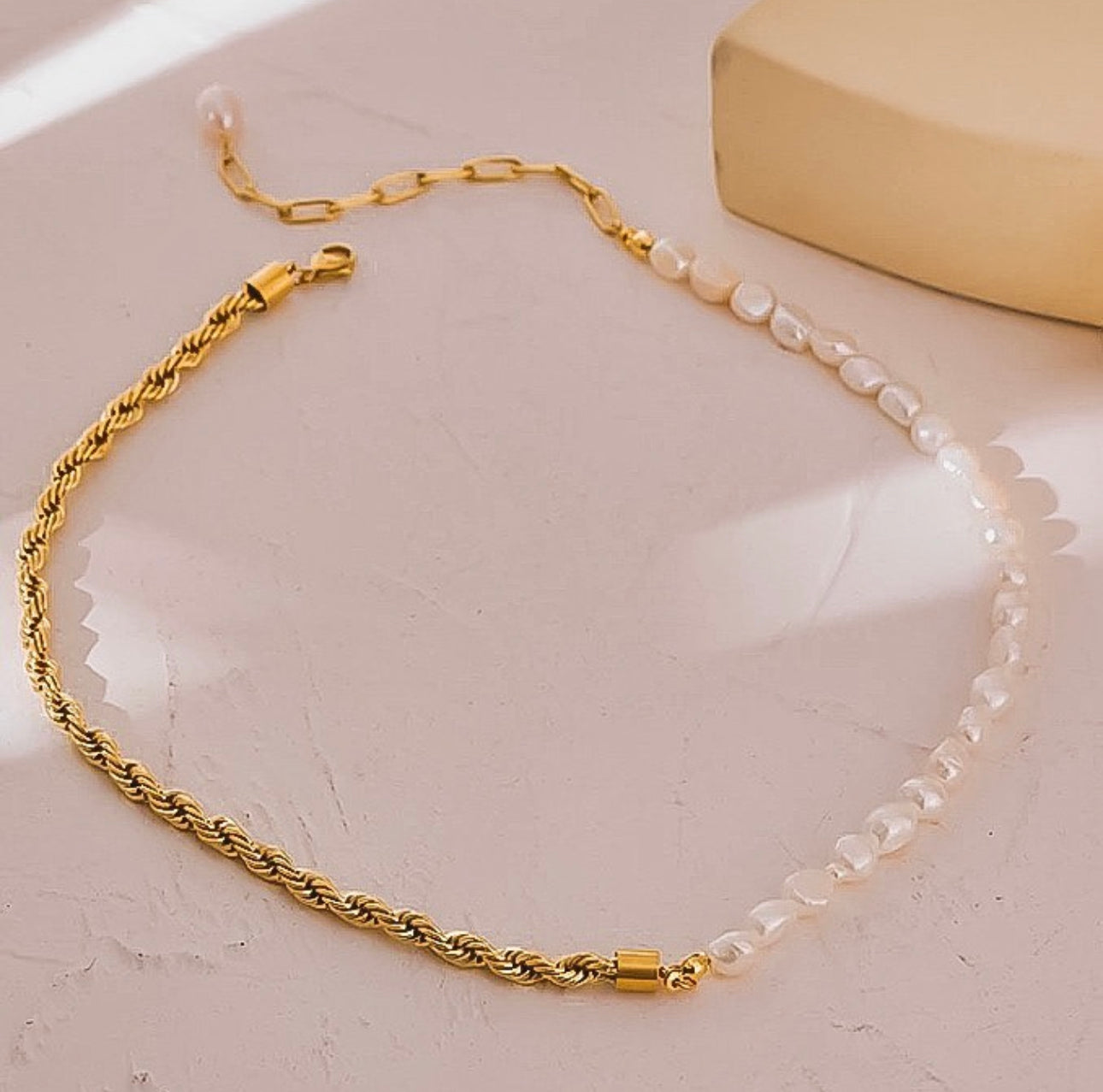 Half Chain Half Pearl SS Necklace